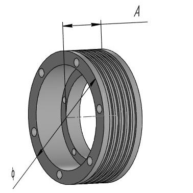 Блок полиспастный Dim1(L)-277 мм на 4 ремня ( grooves pitch 65 mm) GAA266F14 ...